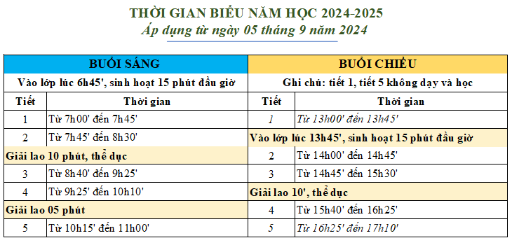 Thời khóa biểu lần 4 thực hiện từ ngày 21/10/2024, năm học 2024-2025