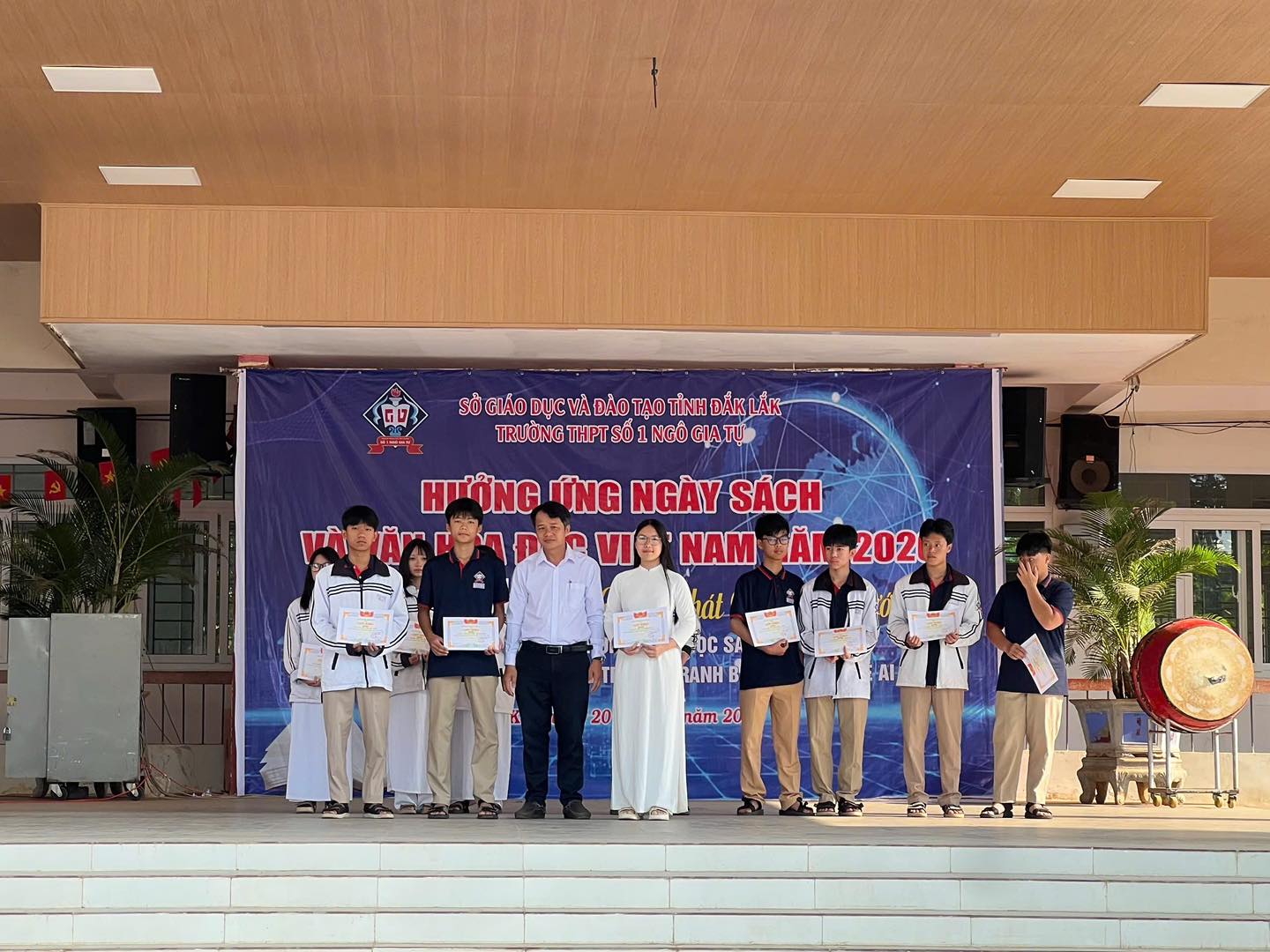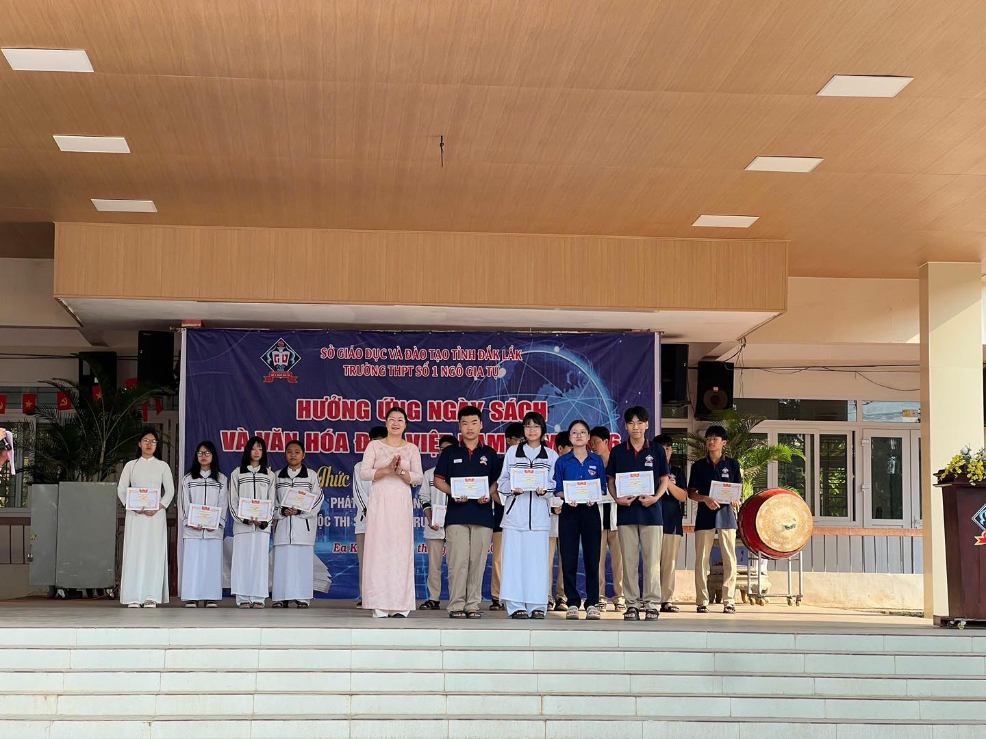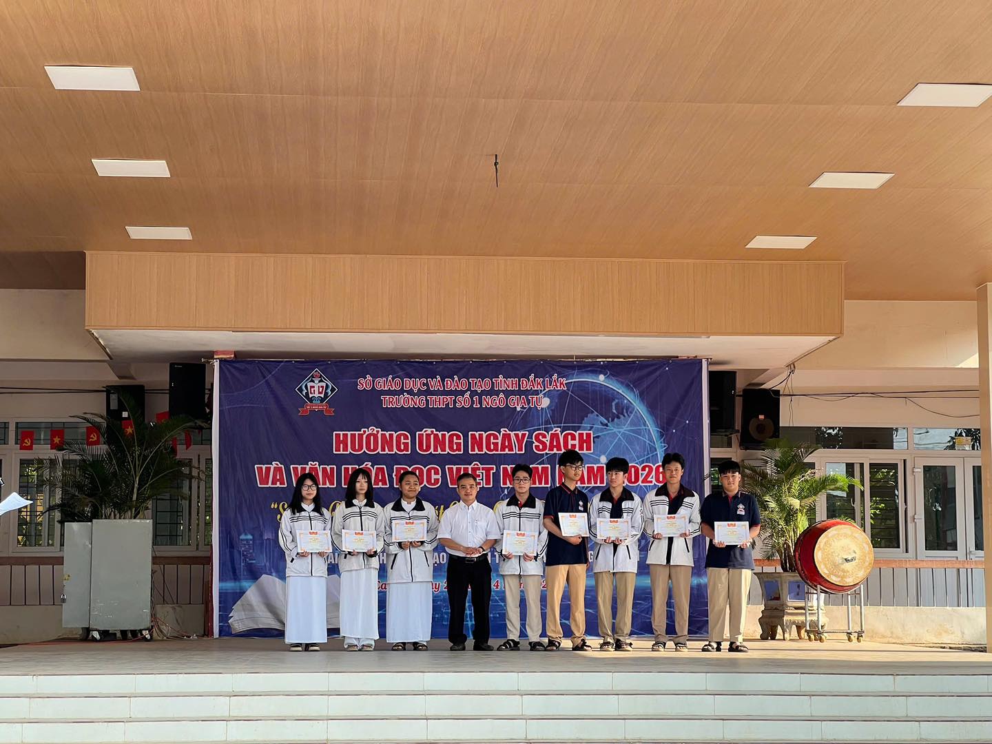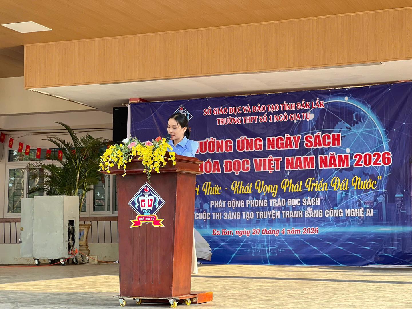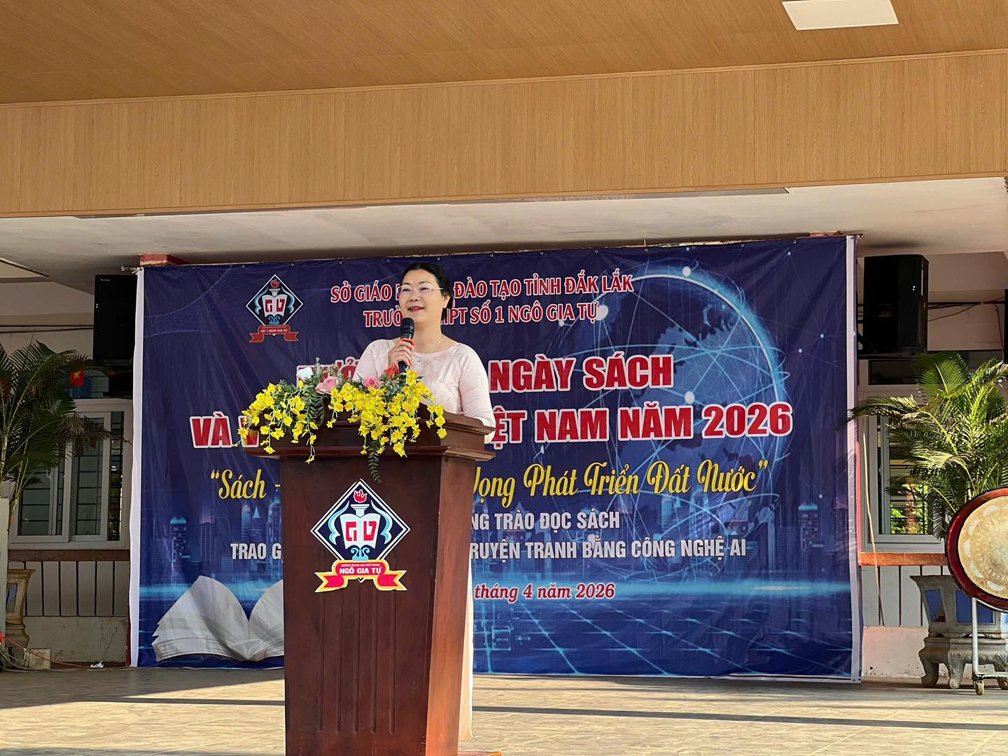 Sáng ngày 20/4/2026, trong buổi sinh hoạt chào cờ đầu tuần, Trường THPT số 1 Ngô Gia Tự đã long trọng tổ chức Lễ ra mắt Thư viện Xanh – công trình trọng điểm được hoàn thiện nhằm chào mừng những ngày lễ lớn của dân tộc, đồng thời hiện thực hóa mục tiêu xây dựng môi trường giáo dục thân thiện, hiện đại và hưởng ứng Ngày Sách và Văn hóa đọc Việt Nam năm 2026.